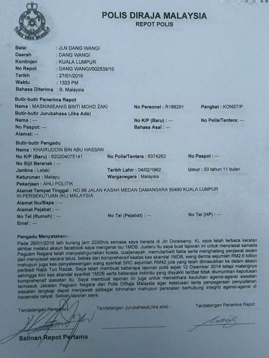 Salinan Laporan Polis Yang Dibuat Oleh Mat Sabu
